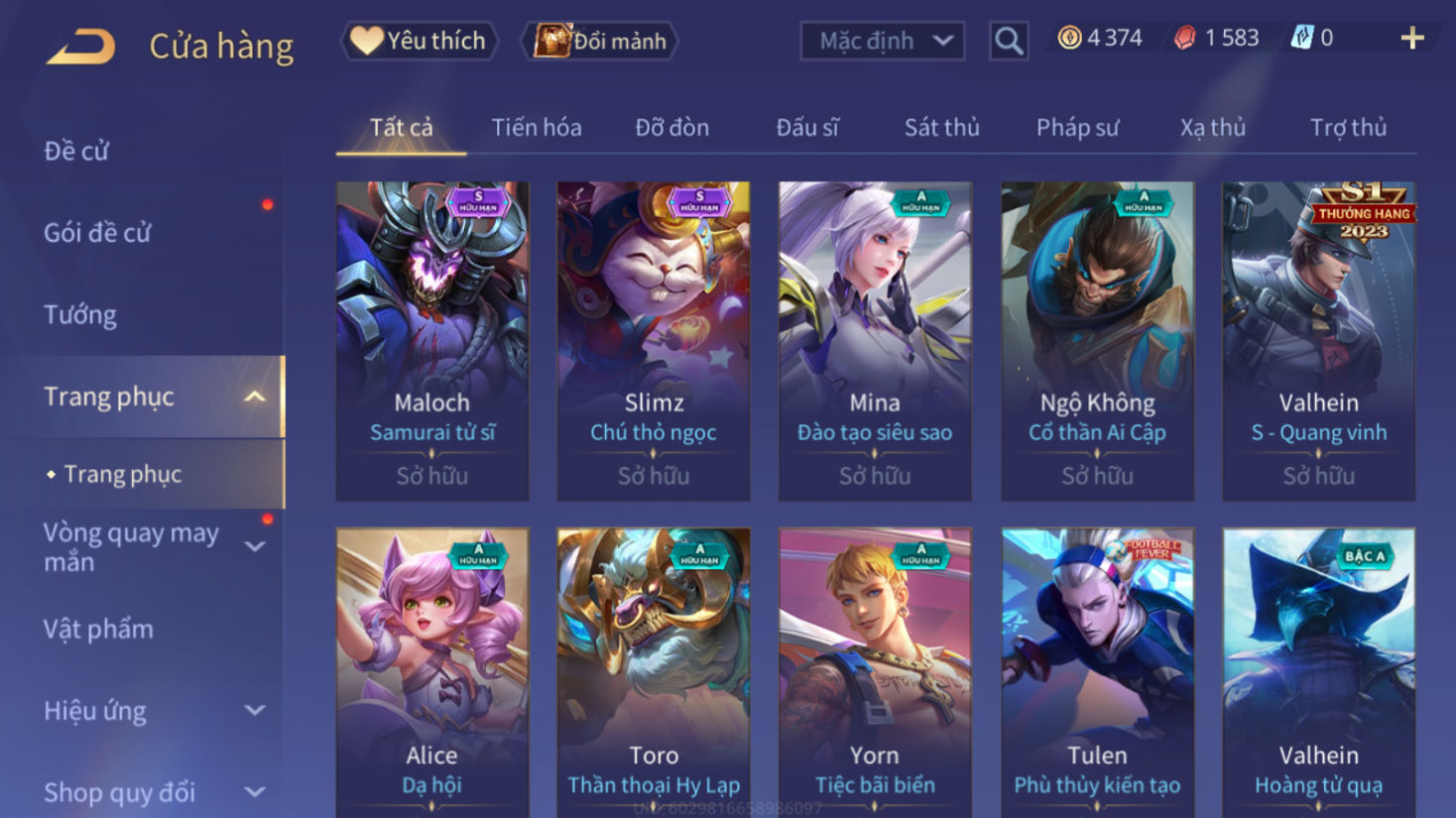 Xem thêm Acc Acc Liên Quân Tự Chọn khác