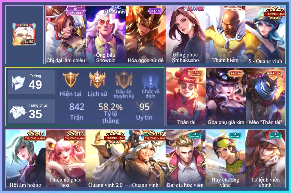 ⭐ Acc giống như hình, rank có thể là rank mùa cũ ⭐