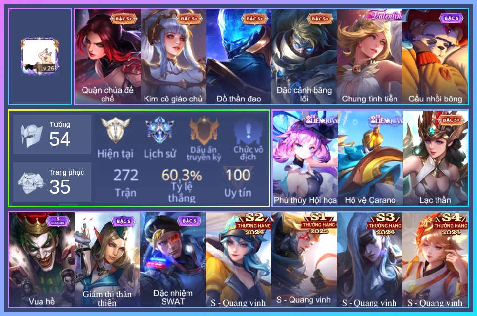⭐ Acc giống như hình, rank có thể là rank mùa cũ ⭐