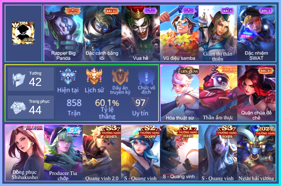 ⭐ Acc giống như hình, rank có thể là rank mùa cũ ⭐