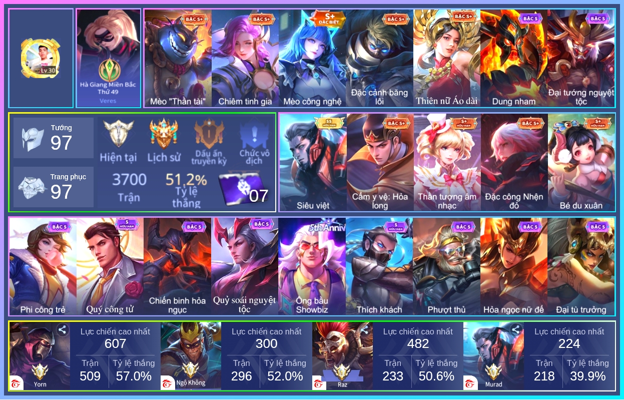 ⭐ Acc giống như hình, rank có thể là rank mùa cũ ⭐