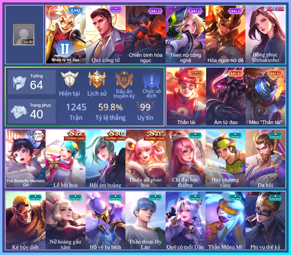 ⭐ Acc giống như hình, rank có thể là rank mùa cũ ⭐