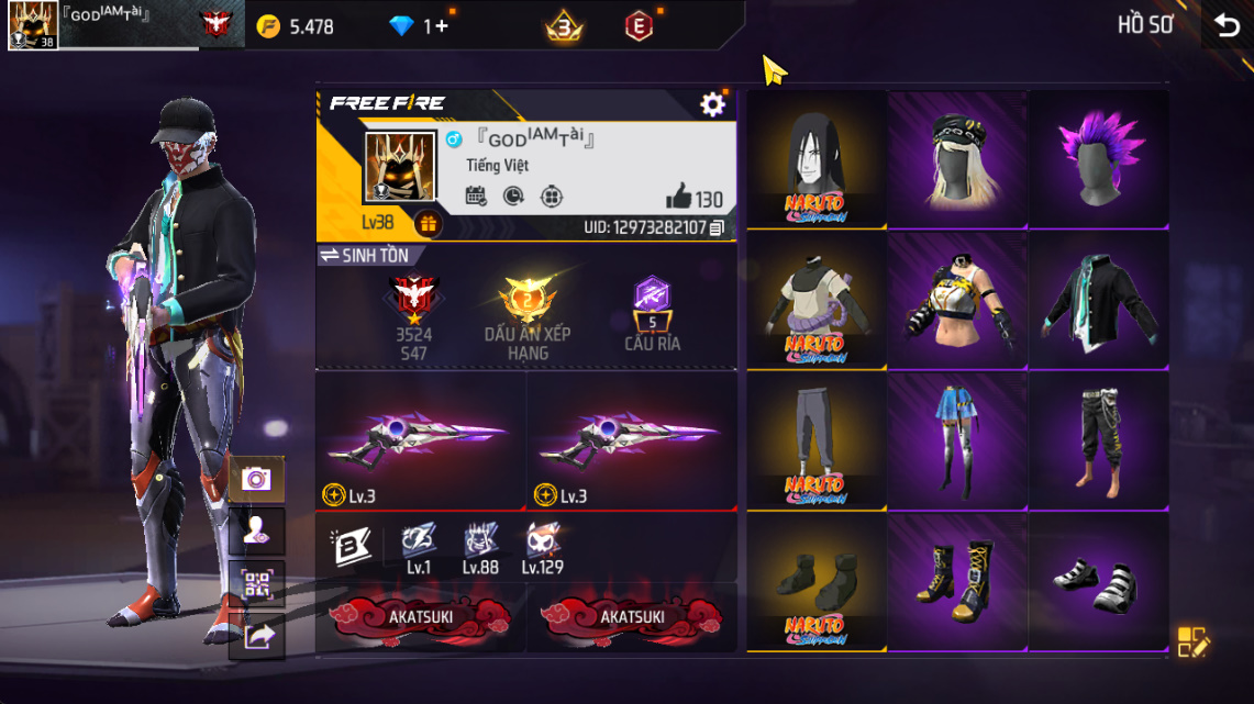 Xem thêm Acc Acc Free Fire Tự Chọn khác